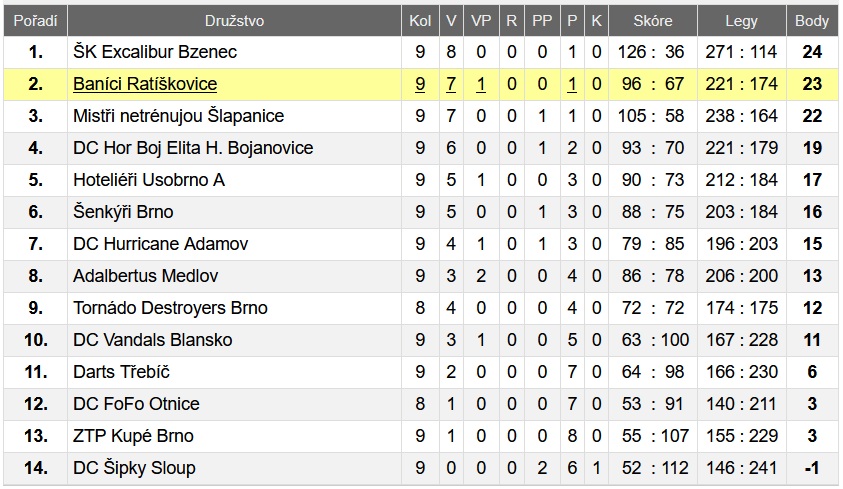 DC Nafrakk Ivančice, DSC Na Středy Rudka, Darts Hodějice, DC Bobři Brno,