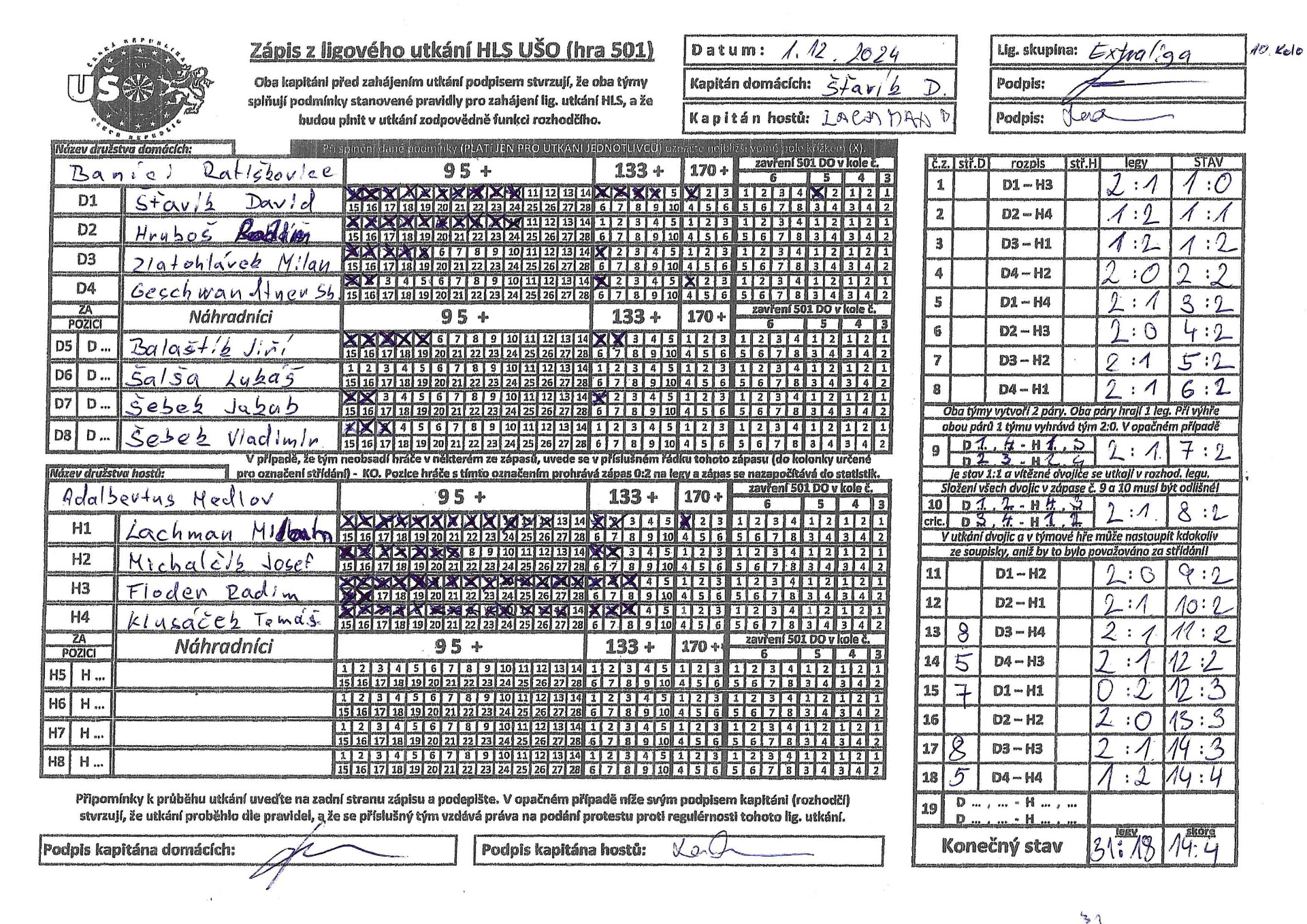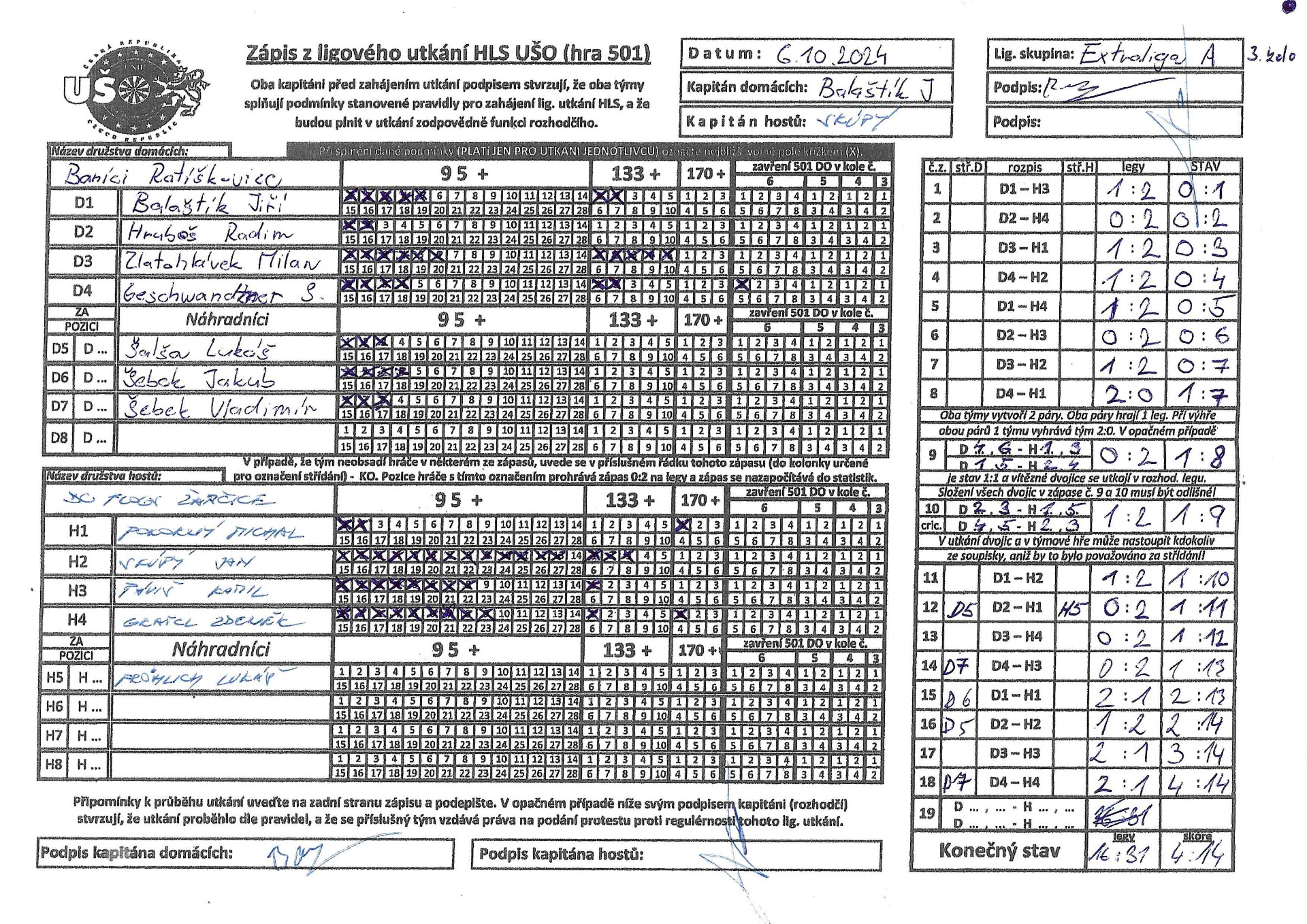 tomu odpovídá. Celkové scóre se zastavilo na čísle 14:4 ve prospěch