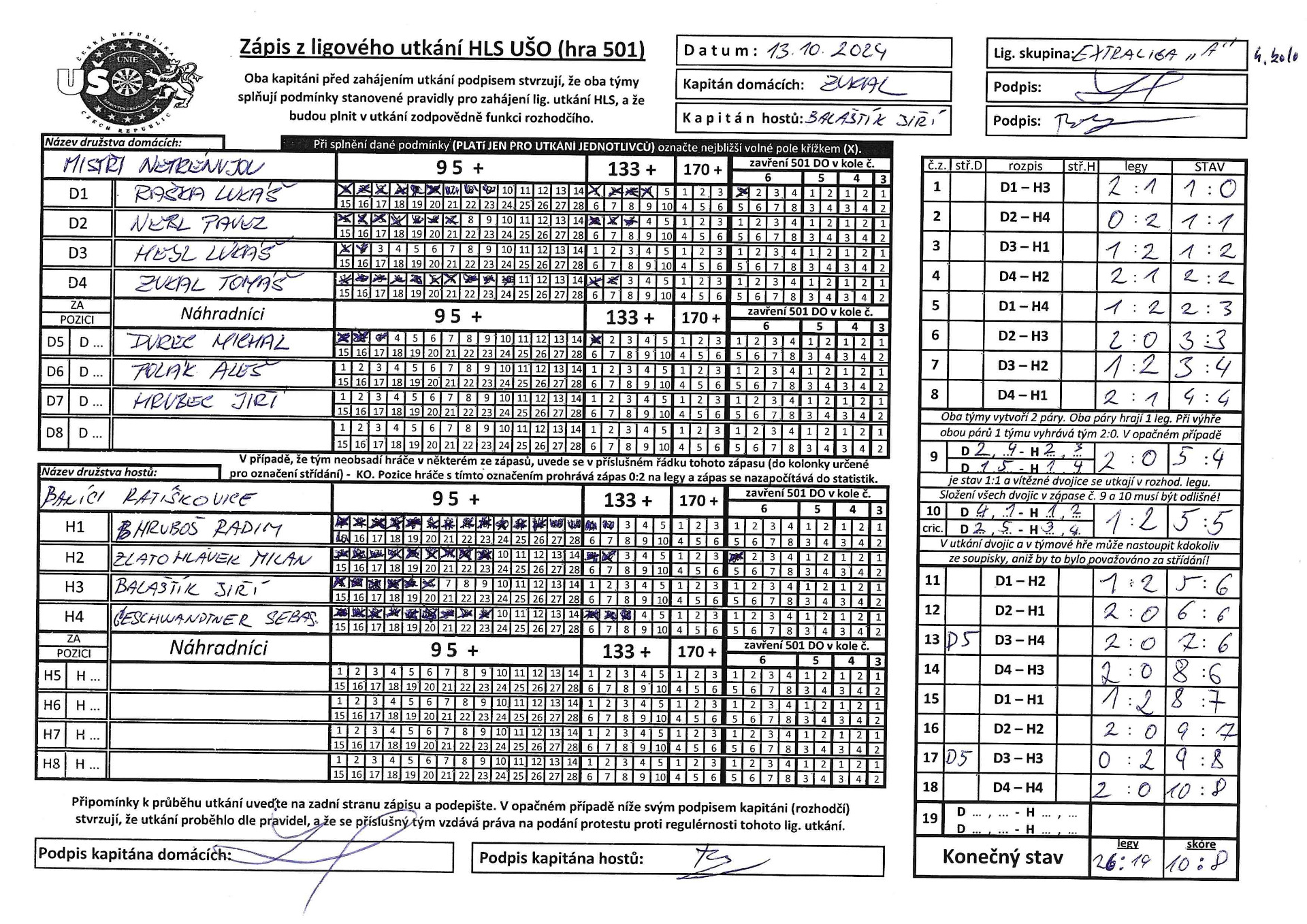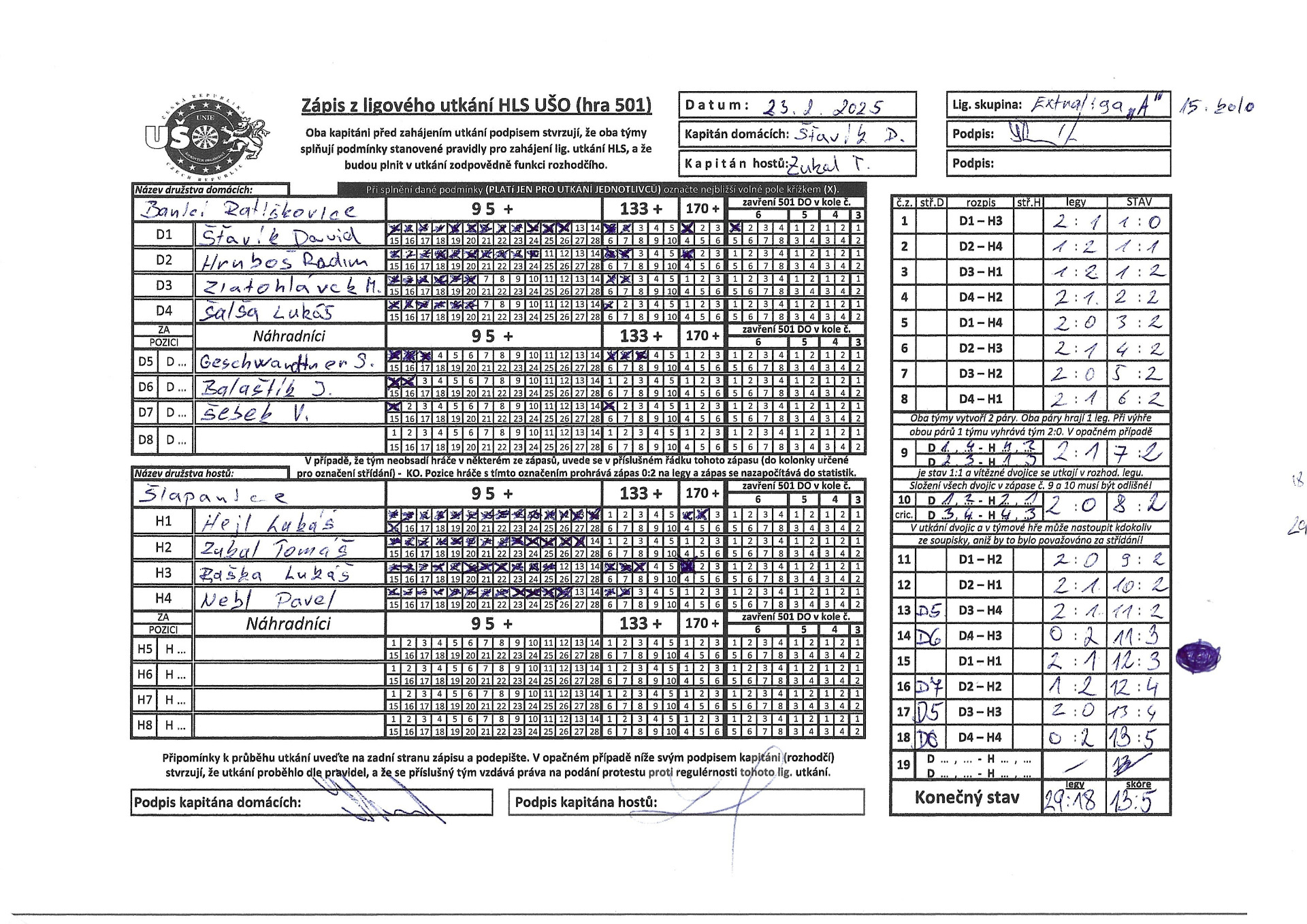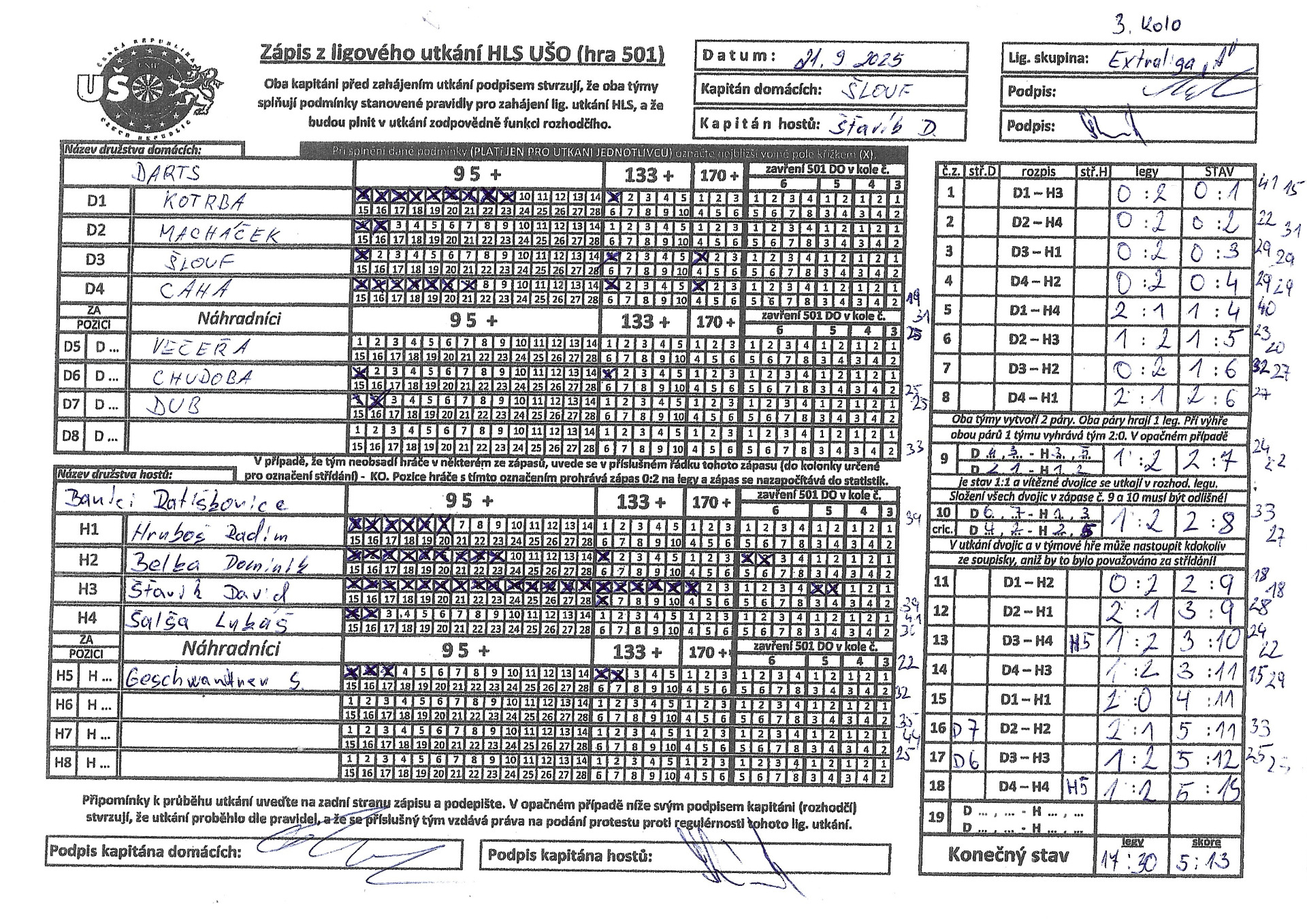 zastavilo na čísle 13:5 v náš prospěch. V tomto utkání byli vyhlášeni